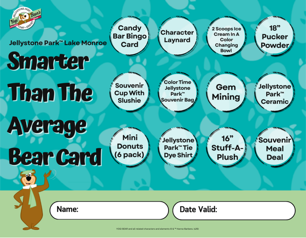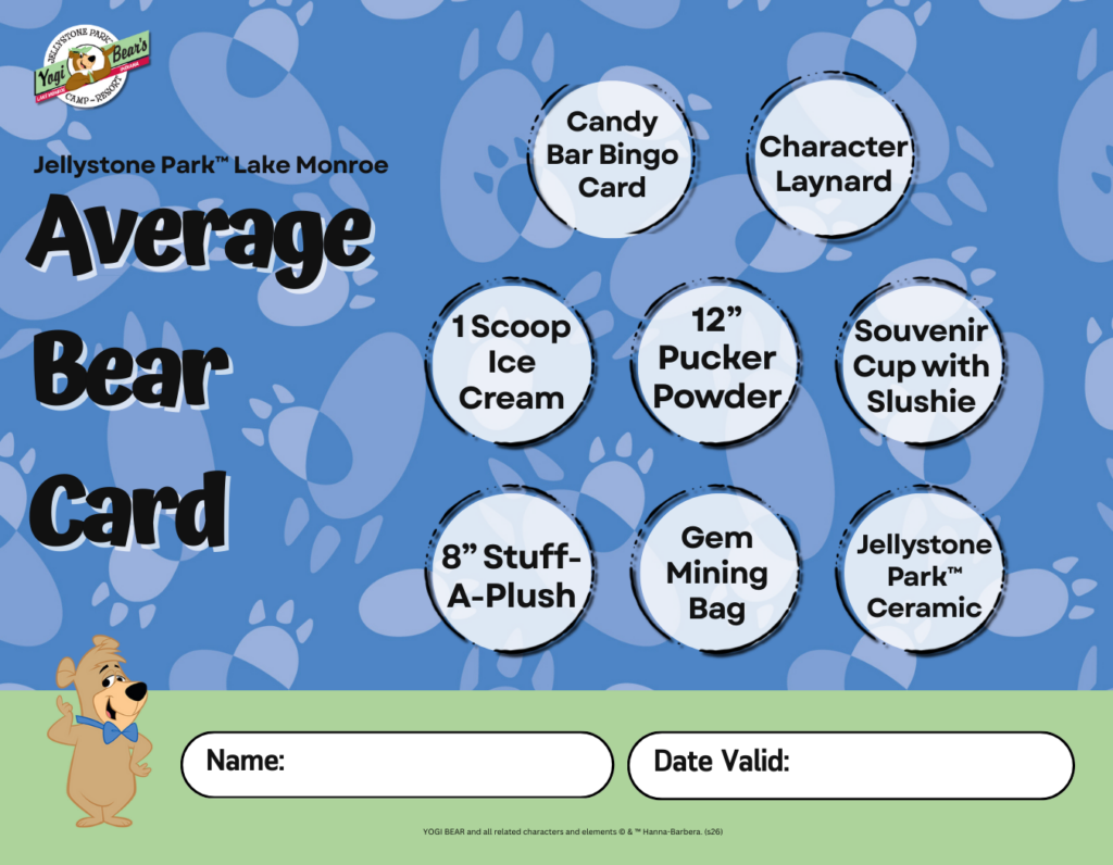 Now you can add extra Yogi Bear™-approved fun to your reservation with our Adventure Cards! These must be purchased ahead of time and are available per person per stay. Choose the perfect option for your camper:
